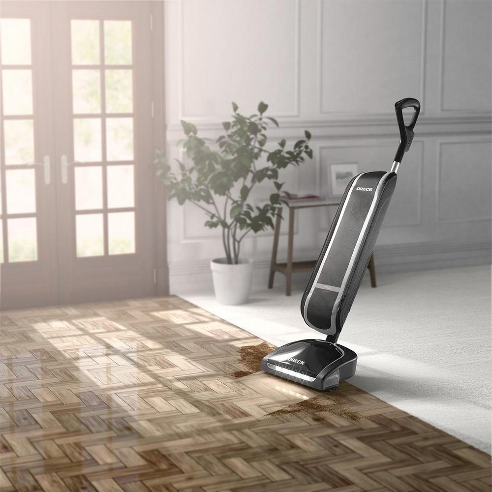 The Oreck elevate command delivers powerful, allergen-trapping performance for all types of flooring - carpet, hardwood, tile and more. Its select filtration technology captures 99percent of allergens, dust and debris at 5. 0 microns or greater. The Sani seal system automatically seals filtration contents upon disposal to lock in dirt & debris, while the extra-large Capacity holds up to 4x the amount of dust, dirt and debris of a typical bag less vacuum. At half the weight of vacuums in its class, the elevate command delivers a complete clean for your carpets without the strain of lifting traditional heavy uprights. The full access low-profile design with an extended 30 foot cord enables you to get those hard to reach areas under furniture, while the 5 bright led headlights let you finally see what you've been missing.